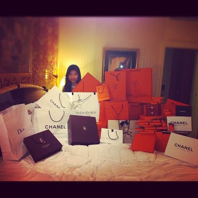 “The pictures are, of course, intended to incite envy. They reek instead of desperation. The young men and women seem lost in their designer clothes, dwarfed and dehumanised by their possessions, as if ownership has gone into reverse. A girl’s head barely emerges from the haul of Chanel, Dior and Hermes shopping bags she has piled onto her vast bed… a photograph whose purpose is to illustrate plenty seems instead to depict a void. She’s alone with her bags and her image in the mirror, in a scene that seems saturated with despair.”