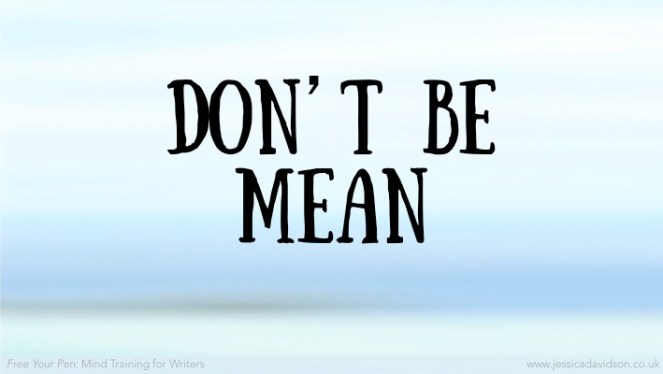 Now a novel without tension, conflict or meanness is probably gonna be a bit bland. I think most people would assume that someone who writes (or reads) about violence and abuse is gonna be affected by that. So isn’t thinking up meanness for your fictional mean characters likely to get you into the habit of mean thoughts?
