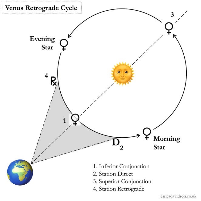 Here’s a diagram showing the four key moments of the Venus cycle with the Sun – not to scale!