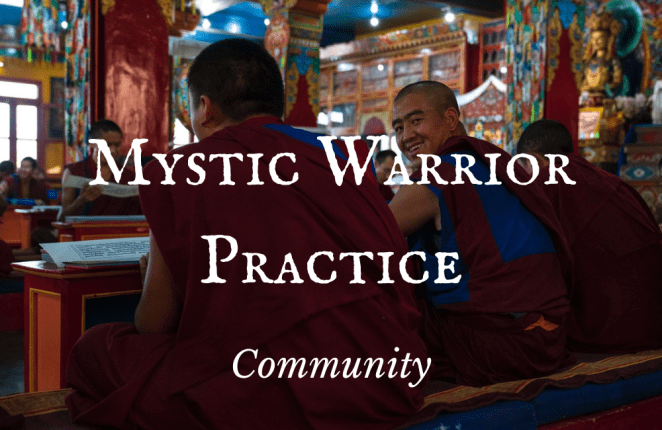 The way to deal with this problem is to bring the two together: the mystic’s passion for God and the activist’s passion for justice, creating wisdom and love in action. This combination is also found in the ideal of the bodhisattva and was the inspiration behind the Mystic Warrior Practice – the marrying of contemplation and action, or love and will. More in the Introduction post.