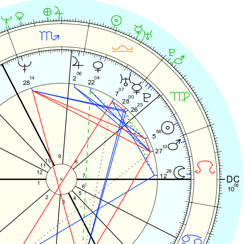 As this progression began I was doing a lot of screenwriting and putting a huge amount of energy into learning the craft (progressed Mars in Virgo). This led to success when I won a screenwriting competition in 2008 when progressed Mercury returned to conjunct natal Mercury. I was determined to become a better writer and planned to take it as far as I could. It didn’t work out that way, for various reasons, but largely to do with my health breaking down in my early 40s (see progressed Venus opposite Saturn).