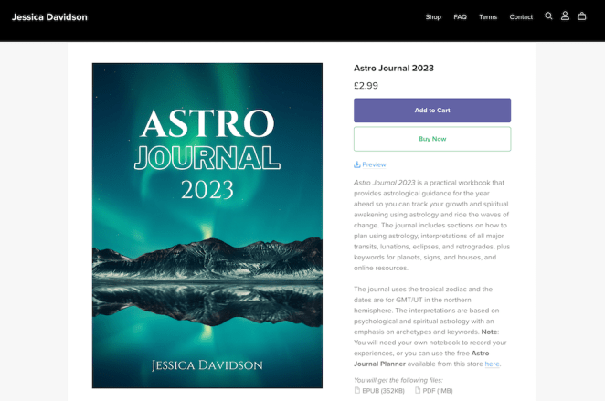 As with the Kindle, you will need your own notebook in which to write and keep track of your transits. Or you can download the free Astro Journal Planner, a printable PDF that replicates the interior of the paperback journal sections for you to write on. The planner is also available from my Payhip store so remember to add it to your cart when you buy Astro Journal 2023!