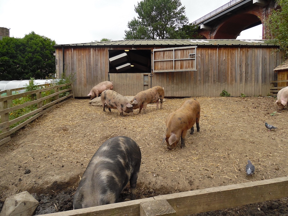 The farm is at the heart of the Ouseburn valley where the river Ouse runs into the Tyne. It sits under the shadow of the three bridges that cross the valley: the railway viaduct built in 1839, the brick road bridge built in 1878, and the modern metro bridge built in 1979.