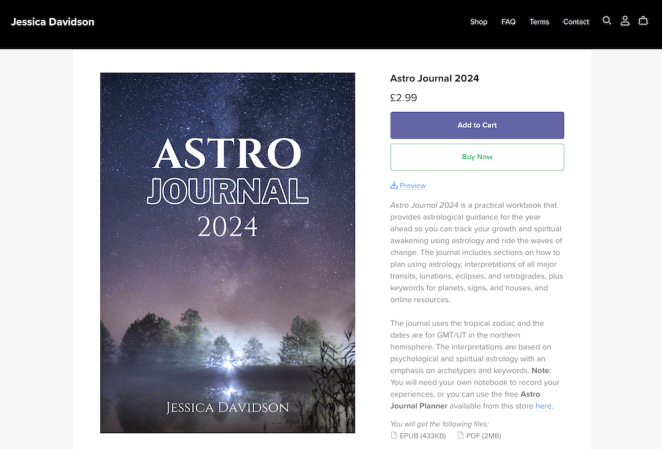 As with the Kindle, you will need your own notebook in which to write and keep track of your transits. Or you can download the free Astro Journal Planner, a printable PDF that replicates the interior of the paperback journal sections for you to write on. The planner is also available from my Payhip store so remember to add it to your cart when you buy Astro Journal 2024!