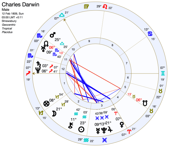 1. It is interesting that you reference Charles Darwin here. I have been looking at what happened last time Neptune was in Pisces. Darwin published “The evolution of the Species” towards the end of that transit. It made me wonder whether current explorations into quantum psychics will shake up our world to the same extent as Darwin’s work. All we need is for some reputable quantum physicist to publish a book that captures the attention of the mainstream media.