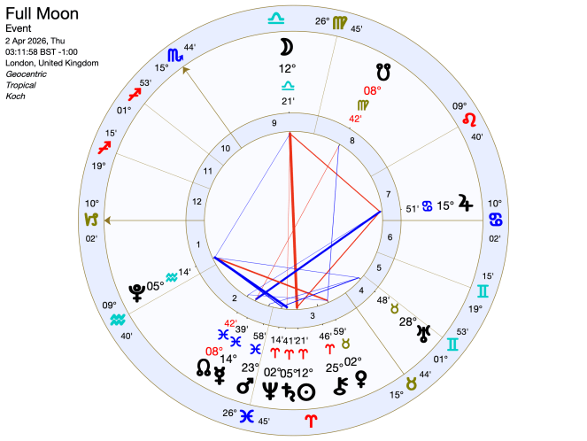 On 2nd April the Full Moon in Libra sees the Sun in Aries conjunct Saturn opposite the Moon in Libra and square Jupiter in a T-square. The Moon also trines Pluto. This lunation is about balancing your needs with those of others while Jupiter provides optimism and a willingness to compromise. You can use the steadiness of Saturn to focus on productive goals and channel your energy into achieving something meaningful to you and others.