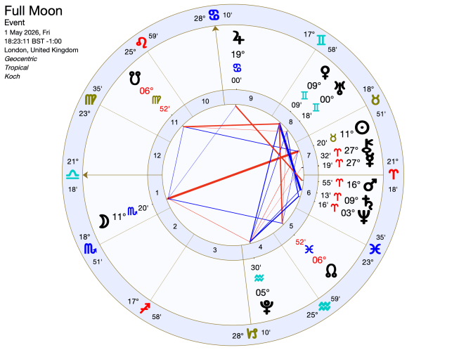 There are three lunations this month, starting with the Full Moon in Scorpio on 1st May which is in a T-square with Pluto, while the Moon also trines Jupiter. This is an intense and emotionally volatile time that could bring passionate feelings to the surface or a desire to explore things in greater depth. Venus is feeling chatty and sociable in Gemini and is supported by Saturn which is good for making connections and sorting out your finances.