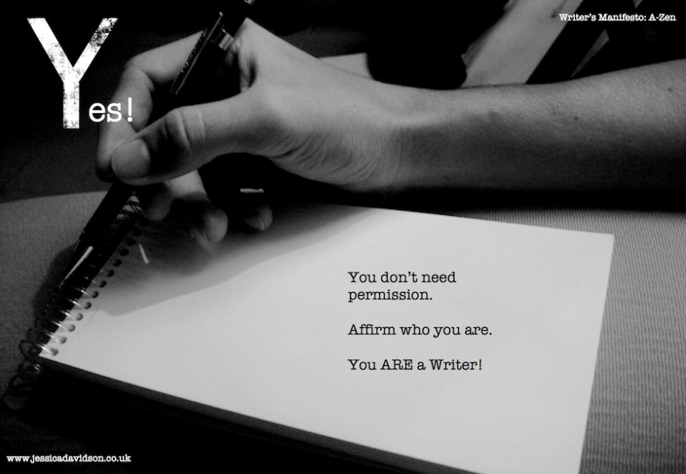 Yes! You don’t need permission. Affirm who you are. You ARE a Writer! >Writer’s Manifesto (pdf)